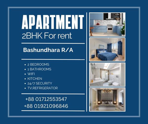 2 Bedrooms Furnished Apartment for Rent at Bashundhara, Dhaka.