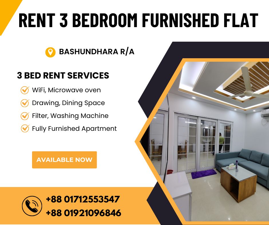 Beautiful Designed 3BHK Serviced Apartment RENT In Bashundhara R/A