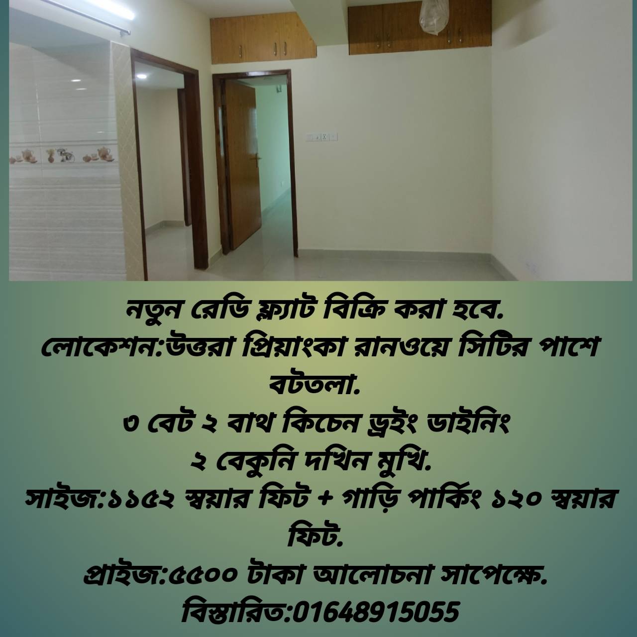A new ready flat will be sold.