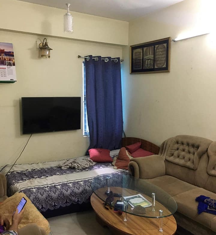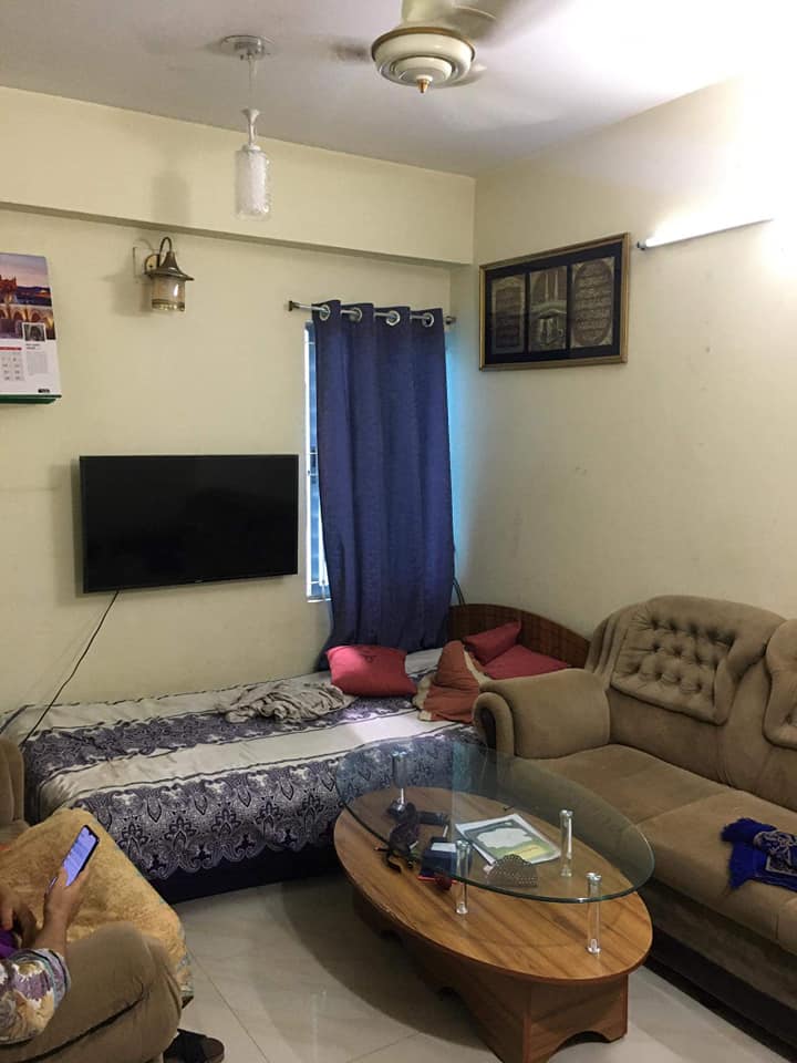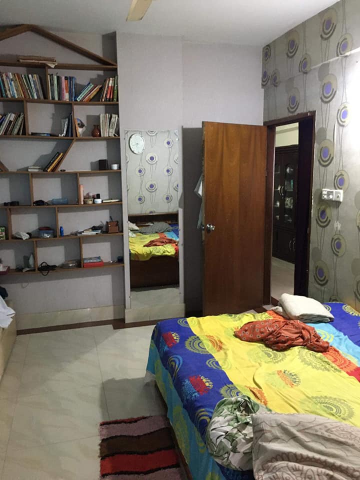 3 Bedroom, 3 Bathroom, kitchen, 1 Dining, 1 Drawing Room, 2 Doors, 2 lift and always generator and spacious car parking facility.