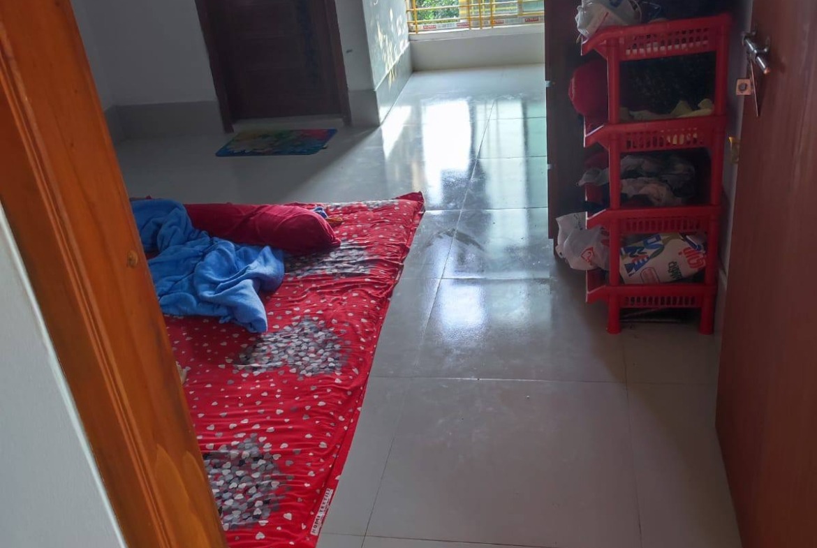 ** The house has 2 rooms, 1 dining room, 2 bathrooms (1 common and one ensuite), 1 large kitchen, and an open balcony with 2 rooms.