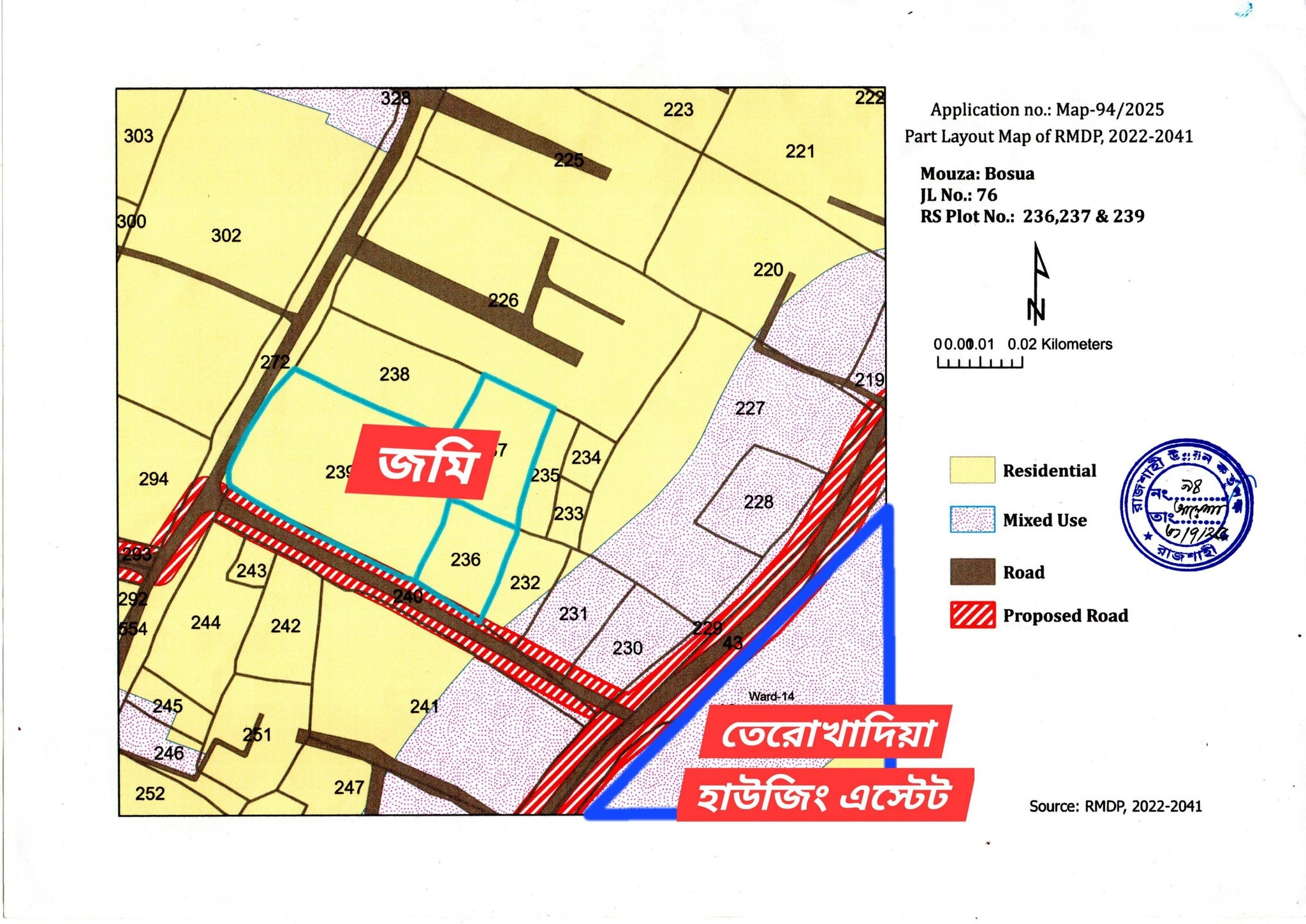Road: There is a 30 feet road proposed by RDA. Currently, according to RS records, the road is about 25/26 feet.
