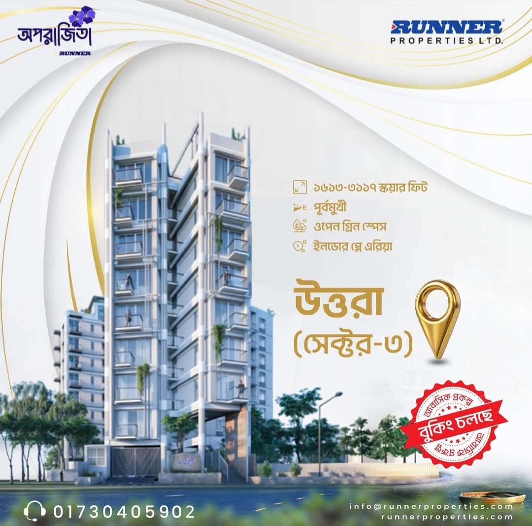 #UttaraLiving #Sector3Apartments #Aparajita #ModernLivingDhaka #RunnerProperties #DreamHome #UrbanLifestyle #ApartmentForSale #FutureLiving #RealEstateBangladesh #TrustInConstruction