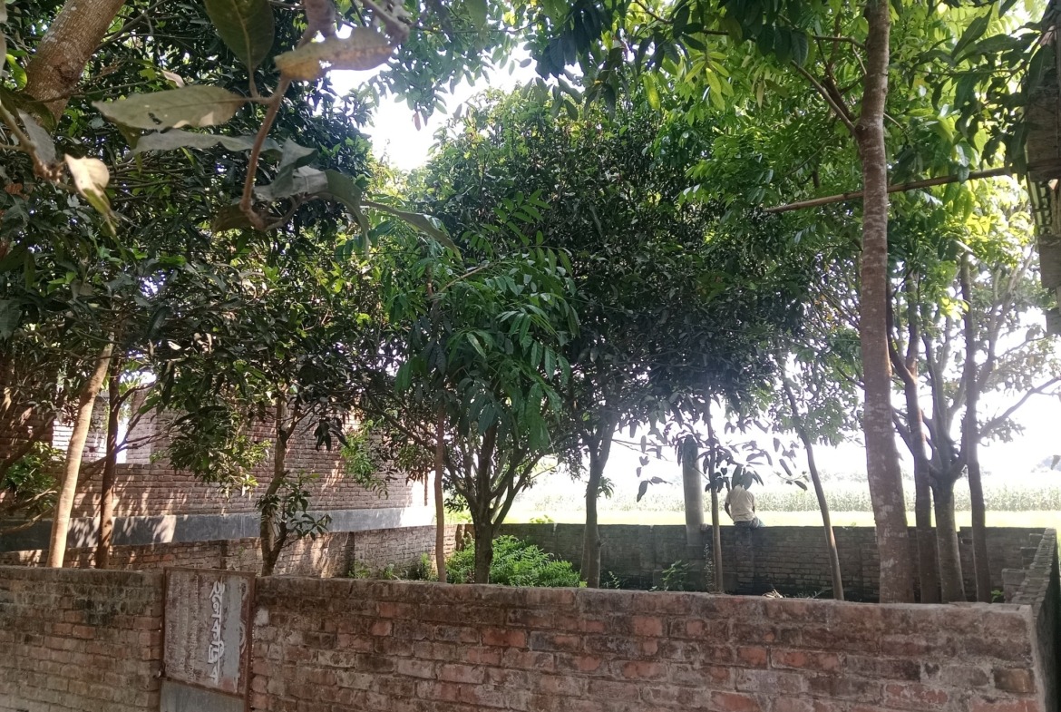 This land is for sale, surrounded by two katha boundaries. The land is located in Miyapur Mouza. There are houses around the land. The land is suitable for building a house. The road to the land is government road. 6 feet. Location: Rajshahi Kot Station.