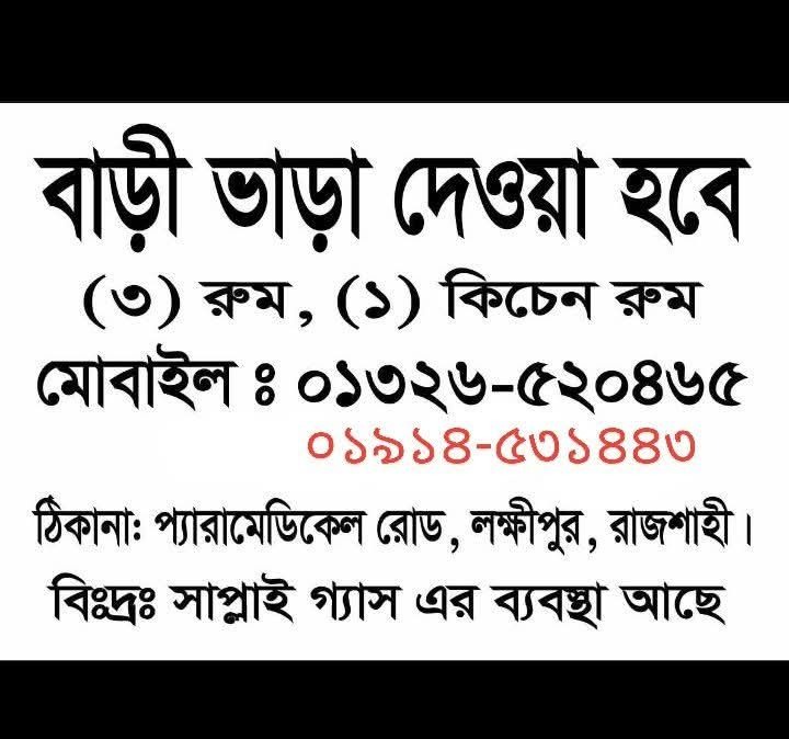 Location: Paramedical Road, Lakshmipur, Rajshahi. Available from May 2026.
