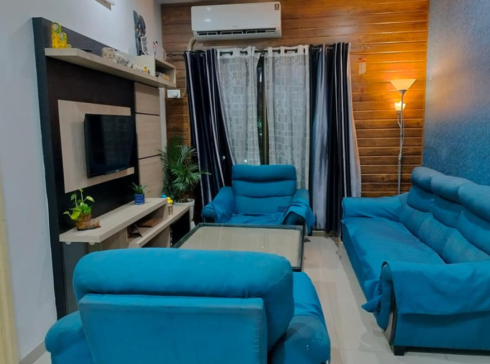 Sofa set, Dinning table, TV unit with TV.